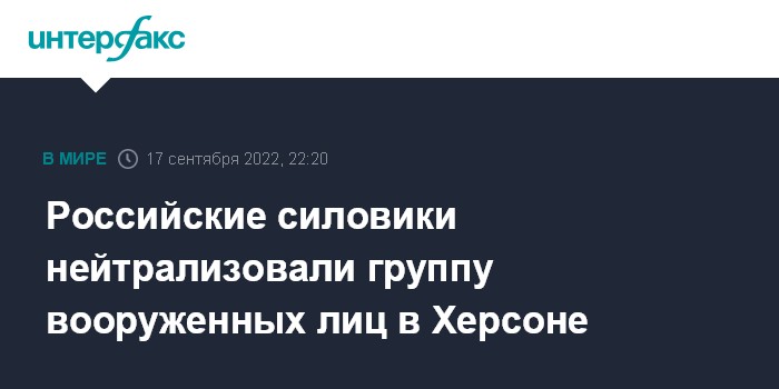 Москва. 17 сентября. INTERFAX.RU - Группа вооруженных лиц нейтрализована в субботу вечером в Херсоне, сообщил журналистам представитель экстренных служб региона.