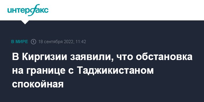Москва. 18 сентября. INTERFAX.RU - Киргизия и Таджикистан соблюдают договоренности о прекращении огня и отводе сил, сообщает в воскресенье Госкомитет национальной безопасности Киргизии.