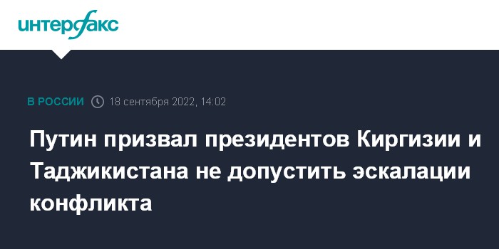 "Путин призвал стороны не допустить дальнейшей эскалации и принять меры к скорейшему урегулированию ситуации исключительно мирными, политико-дипломатическими средствами. Подтвердил готовность России оказывать необходимое содействие в целях обеспечения стабильности в киргизско-таджикском приграничье", - говорится в сообщении.