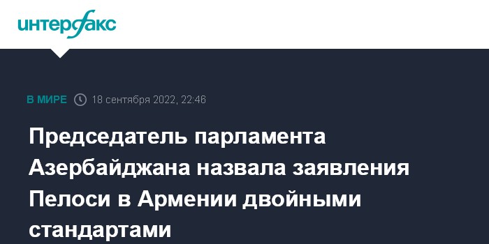 Председатель парламента Азербайджана назвала заявления Пелоси в Армении двойными стандартами