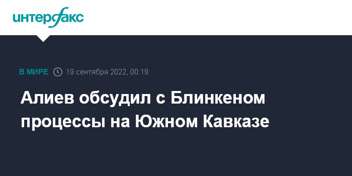 Москва. 19 сентября. INTERFAX.RU - Президент Азербайджана Ильхам Алиев и государственный секретарь США Энтони Блинкен в воскресенье провели телефонный разговор, сообщили в пресс-службе главы азербайджанского государства.