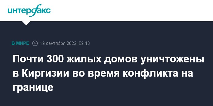 Москва. 19 сентября. INTERFAX.RU - Более 280 жилых домов были уничтожены во время вооруженного конфликта на киргизско-таджикской границе, сообщил в понедельник журналистам представитель МЧС Киргизии Бактыбек Чамашев.