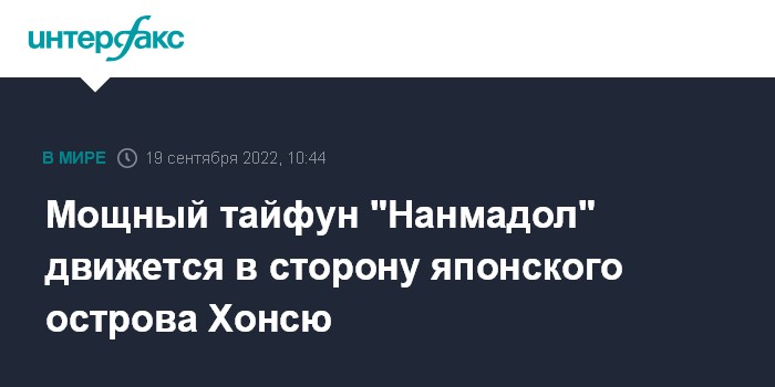 Метеорологическая служба Японии, на которую ссылается газета, сообщила, что порывы ветра в эпицентре тайфуна достигают 126 км в час. "Нанмадол" движется на северо-восток к острову Хонсю, где во вторник ожидаются проливные дожди.