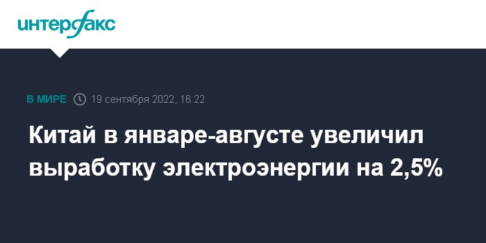 Китай в январе-августе увеличил выработку электроэнергии на 2,5%