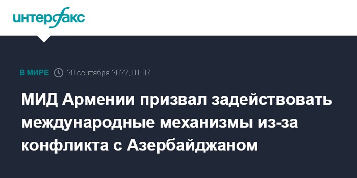 МИД Армении призвал задействовать международные механизмы из-за конфликта с Азербайджаном