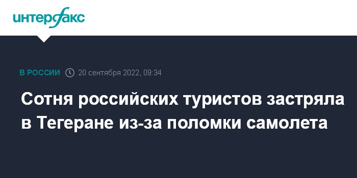 Москва. 20 сентября. INTERFAX.RU - Около ста российских туристов не могут вылететь из Тегерана из-за поломки самолета венесуэльской авиакомпании Conviasa, сообщила глава Ростуризма Зарина Догузова.