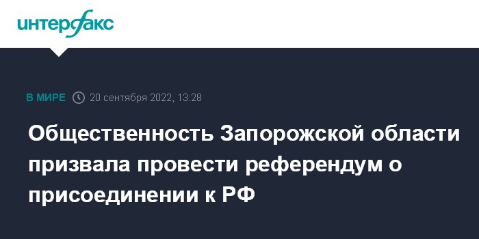 Общественный совет Херсонской области 20 сентября обратился к военно-гражданской администрации с призывом "принять волевое решение о немедленном проведении референдума по вхождению Херсонской области в состав Российской Федерации". Глава ВГА Владимир Сальдо вскоре заявил, что такой референдум будет проведен.