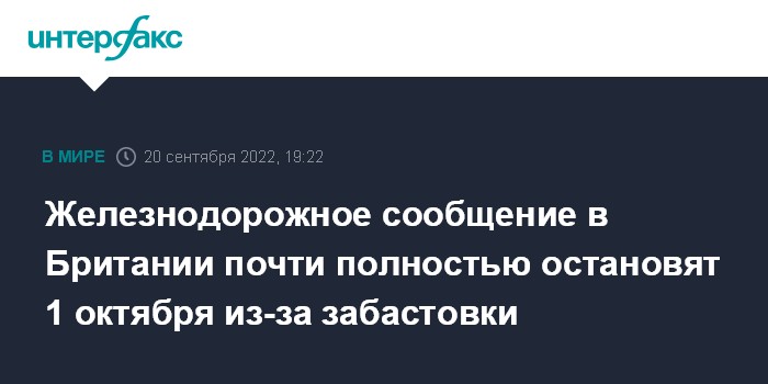 Железнодорожное сообщение в Британии почти полностью остановят 1 октября из-за забастовки