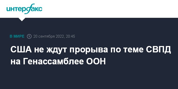 США не ждут прорыва по теме СВПД на Генассамблее ООН