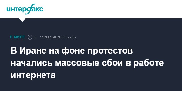 Москва. 21 сентября. INTERFAX.RU - Интернет в Иране работает в среду с сильными перебоями на фоне продолжающихся в стране антиправительственных акций протеста, сообщает Associated Press.
