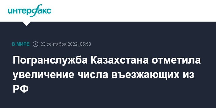 Москва. 23 сентября. INTERFAX.RU - На казахстанско-российской границе увеличилось число въезжающих в республику иностранных граждан, сообщила погранслужба Комитета нацбезопасности Казахстана.