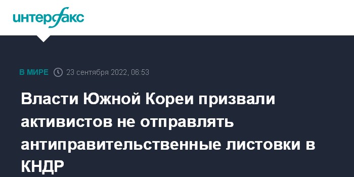 Москва. 23 сентября. INTERFAX.RU - Министерство по делам объединения двух Корей призвало активистов воздержаться от отправки антипхеньянских листовок через границу с КНДР, сообщает Yonhap.