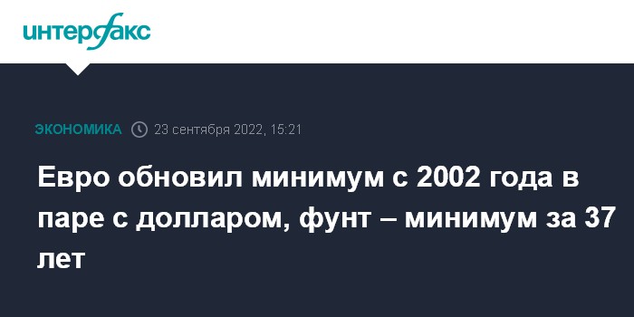Евро обновил минимум с 2002 года в паре с долларом, фунт – минимум за 37 лет