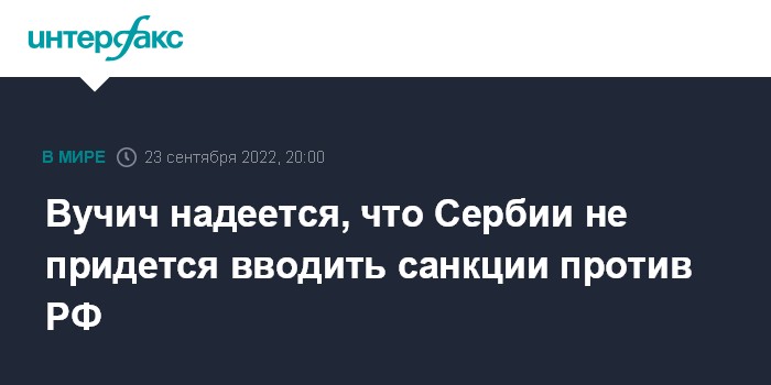 Москва. 23 сентября. INTERFAX.RU - Президент Сербии Александр Вучич надеется, что его страна не введет санкции против России, но отметил, что на республику оказывается давление.