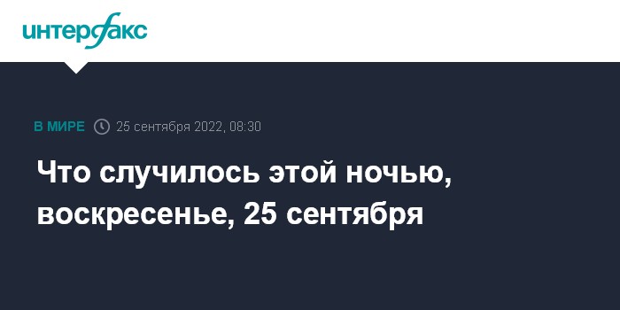 Москва. 25 сентября. INTERFAX.RU - Краткая сводка событий, произошедших к утру: