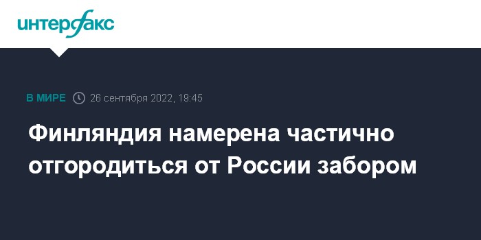 Москва. 26 сентября. INTERFAX.RU - Пограничная охрана Финляндии предлагает огородить часть границы с Россией, чтобы предотвратить незаконное проникновение на территорию страны.