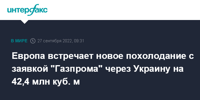 Европа встречает новое похолодание с заявкой "Газпрома" через Украину на 42,4 млн куб. м