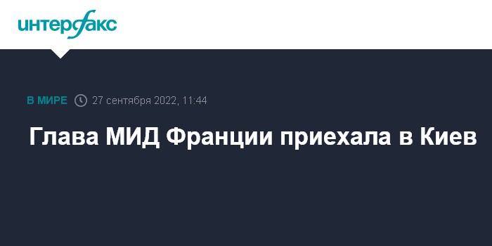 Москва. 27 сентября. INTERFAX.RU - Министр иностранных дел Франции Катрин Колонна во вторник сообщила, что находится в Киеве.