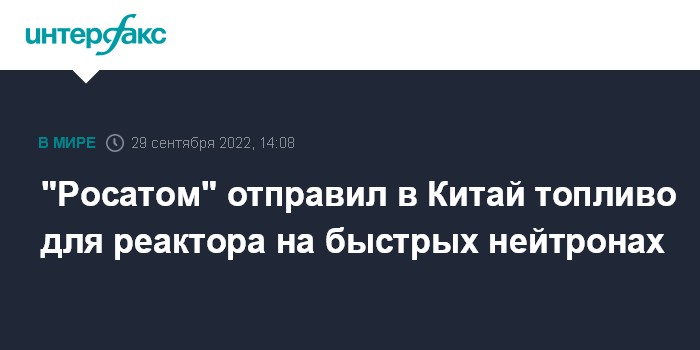Москва. 29 сентября. INTERFAX.RU - Топливный дивизион госкорпорации "Росатом" - ТВЭЛ - выполнил первую отгрузку топлива для реактора на быстрых нейтронах в Китае, сообщила компания.