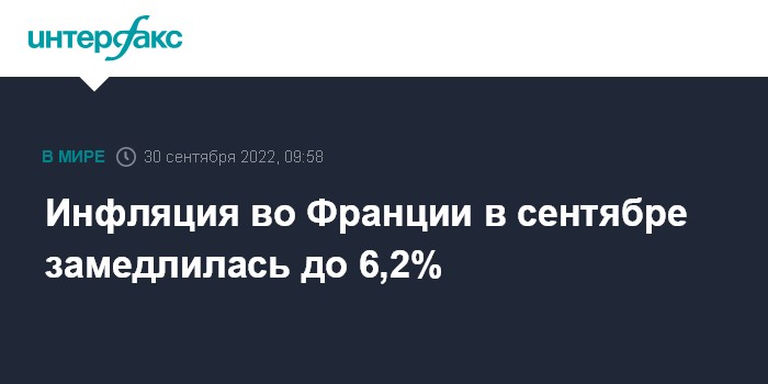 Инфляция во Франции в сентябре замедлилась до 6,2%