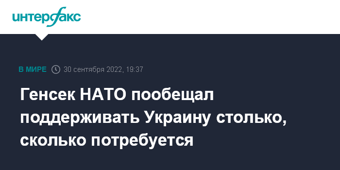 Москва. 30 сентября. INTERFAX.RU - НАТО готово продолжать оказывать поддержку Киеву столько времени, сколько будет нужно, заявил на пресс-конференции генеральный секретарь альянса Йенс Столтенберг.