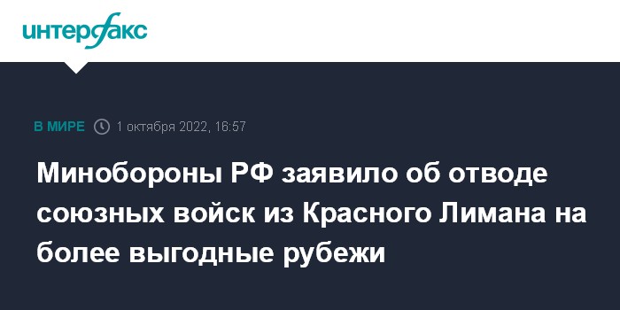 Минобороны РФ заявило об отводе союзных войск из Красного Лимана на более выгодные рубежи