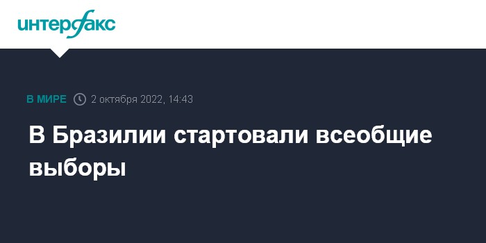 Москва. 2 октября. INTERFAX.RU - В Бразилии в воскресенье стартовали всеобщие выборы, по итогам которых определятся новые президент и вице-президент страны, состав Национального конгресса (парламента), губернаторы, вице-губернаторы и депутаты законодательных органов штатов.