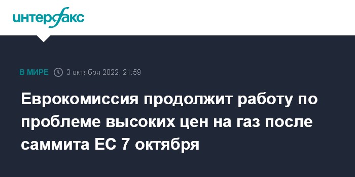 Еврокомиссия продолжит работу по проблеме высоких цен на газ после саммита ЕС 7 октября