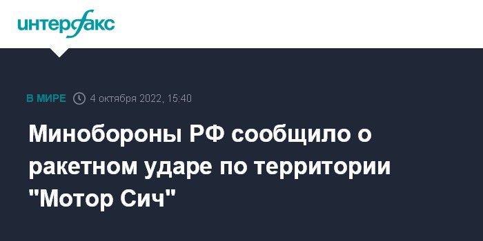 Минобороны РФ сообщило о ракетном ударе по территории "Мотор Сич"
