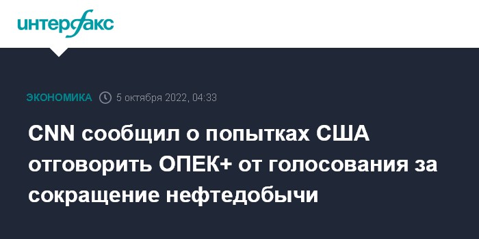 CNN сообщил о попытках США отговорить ОПЕК+ от голосования за сокращение нефтедобычи