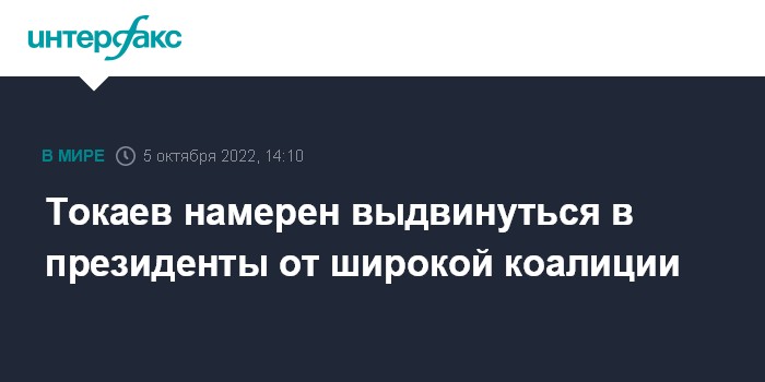 Москва. 5 октября. INTERFAX.RU - Президент Казахстана Касым-Жомарт Токаев заявил, что хочет выдвинуться на внеочередные президентские выборы не от какой-то конкретной организации, а от коалиции общественно-политических сил.