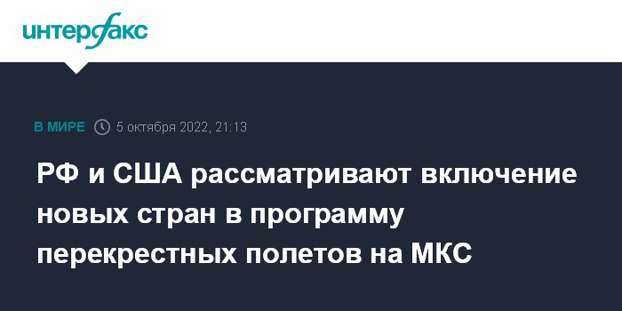 В июле 2022 года в рамках программы МКС "Роскосмос" и NASA подписали соглашение о перекрестных полетах трех российских космонавтов на американских пилотируемых кораблях Crew Dragon и трех американских астронавтов на российских пилотируемых кораблях "Союз МС" в 2022-2024 годах.