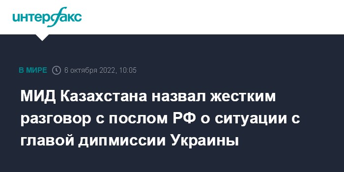 "Посол был вызван в МИД на серьезный разговор. Обсудили высказывание официального представителя министерства иностранных дел Российской Федерации Марии Захаровой, которое не соответствует духу равноправного стратегического партнерства. Разговор был довольно жесткий", - сообщили агентству "Интерфакс-Казахстан" в МИД республики.