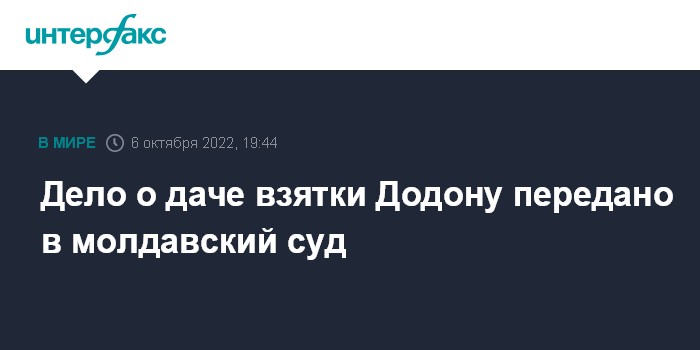 Москва. 6 октября. INTERFAX.RU - Прокуратура Молдавии передала в суд еще одно уголовное дело в отношении бывшего президента Игоря Додона, сообщила в четверг пресс-служба генеральной прокуратуры страны.
