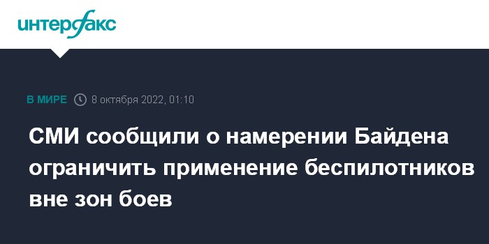 Москва. 8 октября. INTERFAX.RU - Президент США Джо Байден подписал распоряжение об ограничении нанесения ударов беспилотных летательных аппаратов вне зон боевых действий в контртеррористических целях, пишет газета The New York Times.