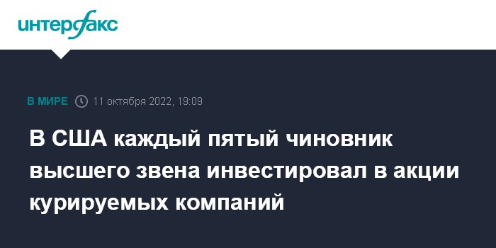 В США каждый пятый чиновник высшего звена инвестировал в акции курируемых компаний
