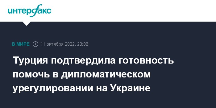Турция подтвердила готовность помочь в дипломатическом урегулировании на Украине