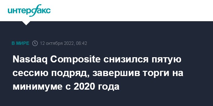 Nasdaq Composite снизился пятую сессию подряд, завершив торги на минимуме с 2020 года