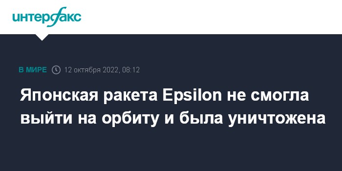 Москва. 12 октября. INTERFAX.RU - Японская ракета-носитель Epsilon не смогла выйти на намеченную орбиту из-за неполадок при отделении последней ступени и была дистанционно уничтожена вместе с восемью спутниками на борту, сообщает Японское агентство аэрокосмических исследований (JAXA).