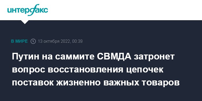 Путин на саммите СВМДА затронет вопрос восстановления цепочек поставок жизненно важных товаров