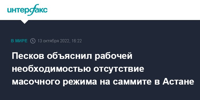 Песков объяснил рабочей необходимостью отсутствие масочного режима на саммите в Астане