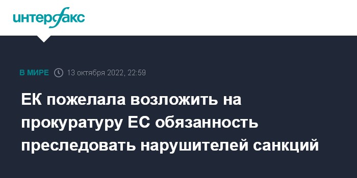 ЕК пожелала возложить на прокуратуру ЕС обязанность преследовать нарушителей санкций