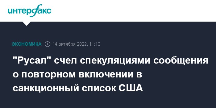 "Русал" счел спекуляциями сообщения о повторном включении в санкционный список США