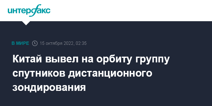 Москва. 15 октября. INTERFAX.RU - Китай успешно вывел на околоземную орбиту группу спутников дистанционного зондирования серии "Яогань-36", сообщила Китайская аэрокосмическая научно-техническая корпорация (CASC).