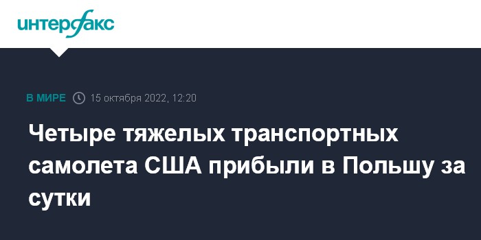 Москва. 15 октября. INTERFAX.RU - Не менее четырех американских тяжелых транспортных самолета прибыли за сутки в Польшу, следует из данных западных авиационных ресурсов.