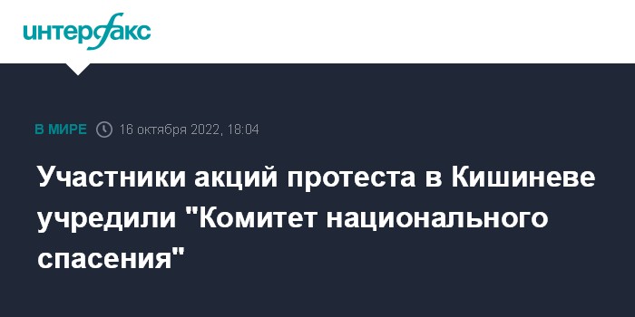 Москва. 16 октября. INTERFAX.RU - Участники акций протеста в Кишиневе заявили об учреждении "Комитета национального спасения". Как передает корреспондент "Интерфакса", с предложением по этому поводу выступил лидер партии "Шор", беглый олигарх Илан Шор, который скрывается в Израиле от молдавского правосудия.