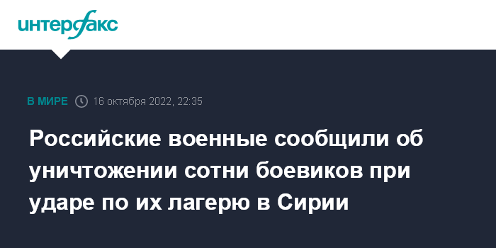Москва. 16 октября. INTERFAX.RU - Воздушно-космические силы РФ посредством авиационных ударов уничтожили в лагере подготовки боевиков в Сирии около 100 радикалов, заявил на брифинге в воскресенье замруководителя Центра по примирению враждующих сторон в Сирии генерал-майор Олег Егоров.
