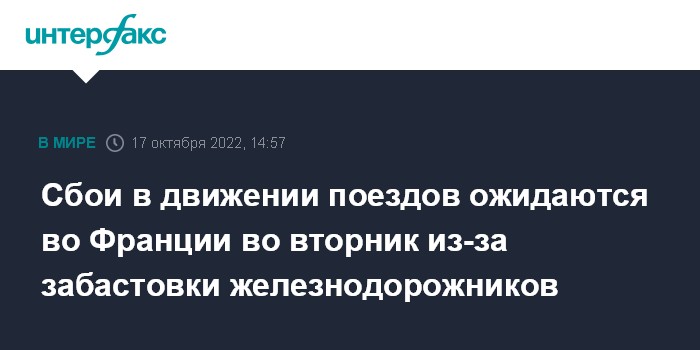 Сбои в движении поездов ожидаются во Франции во вторник из-за забастовки железнодорожников