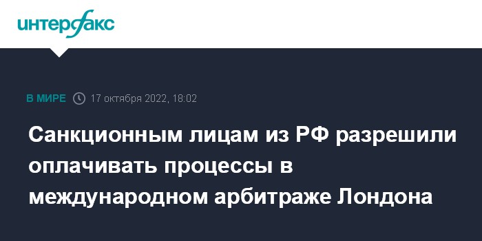 Москва. 17 октября. INTERFAX.RU - Российские и белорусские компании, в отношении которых введены санкции Великобритании, смогут оплачивать судебные расходы в рамках процессов в международном арбитраже Лондона (London Court of International Arbitration, LCIA).