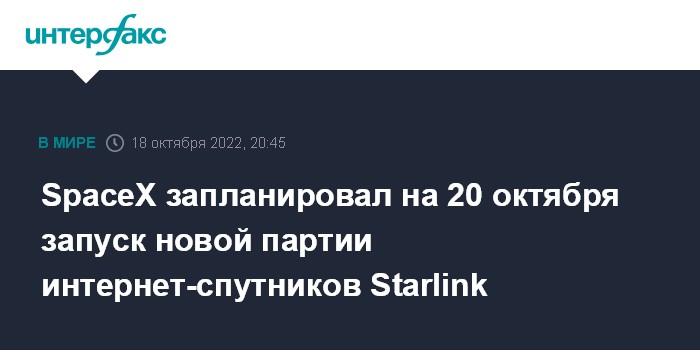 SpaceX запланировал на 20 октября запуск новой партии интернет-спутников Starlink
